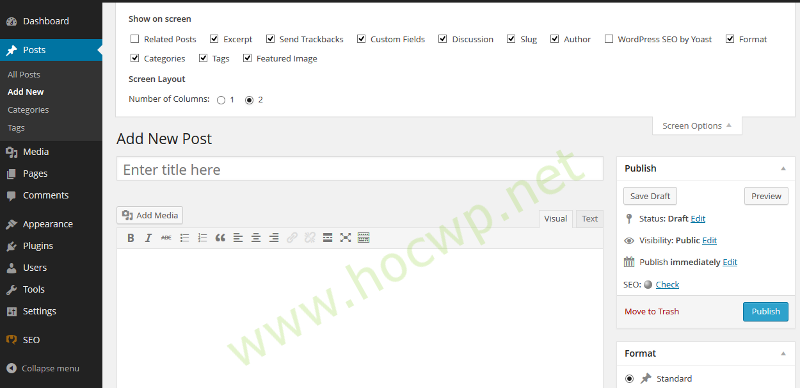 Trên WordPress cũng giống như các trình soạn thảo trên web khác, sẽ có 2 kiểu cho bạn chọn đó là kiểu trực quan và kiểu dùng mã HTML.