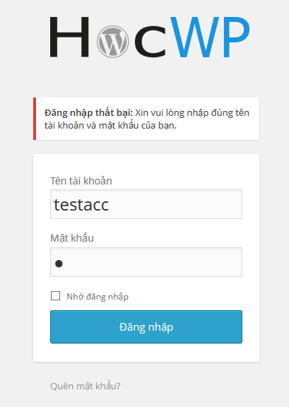 Mục đích của các hàm bên trên cũng chỉ là thay đổi lại những thông báo mặc định của WordPress, nhằm giúp người dùng không thể phân biệt được mình đã gõ sai mật khẩu hay tên đăng nhập. Bạn có thể coi như đây là quá trình Việt hóa trang đăng nhập trong WordPress.